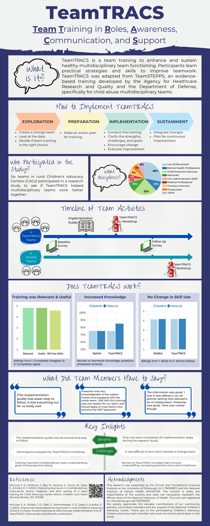 We are dedicated to refining our TeamTRACS program to better address the needs of CAC teams. Our ongoing research aims to explore strategies to enhance and sustain implementation of TeamTRACS.